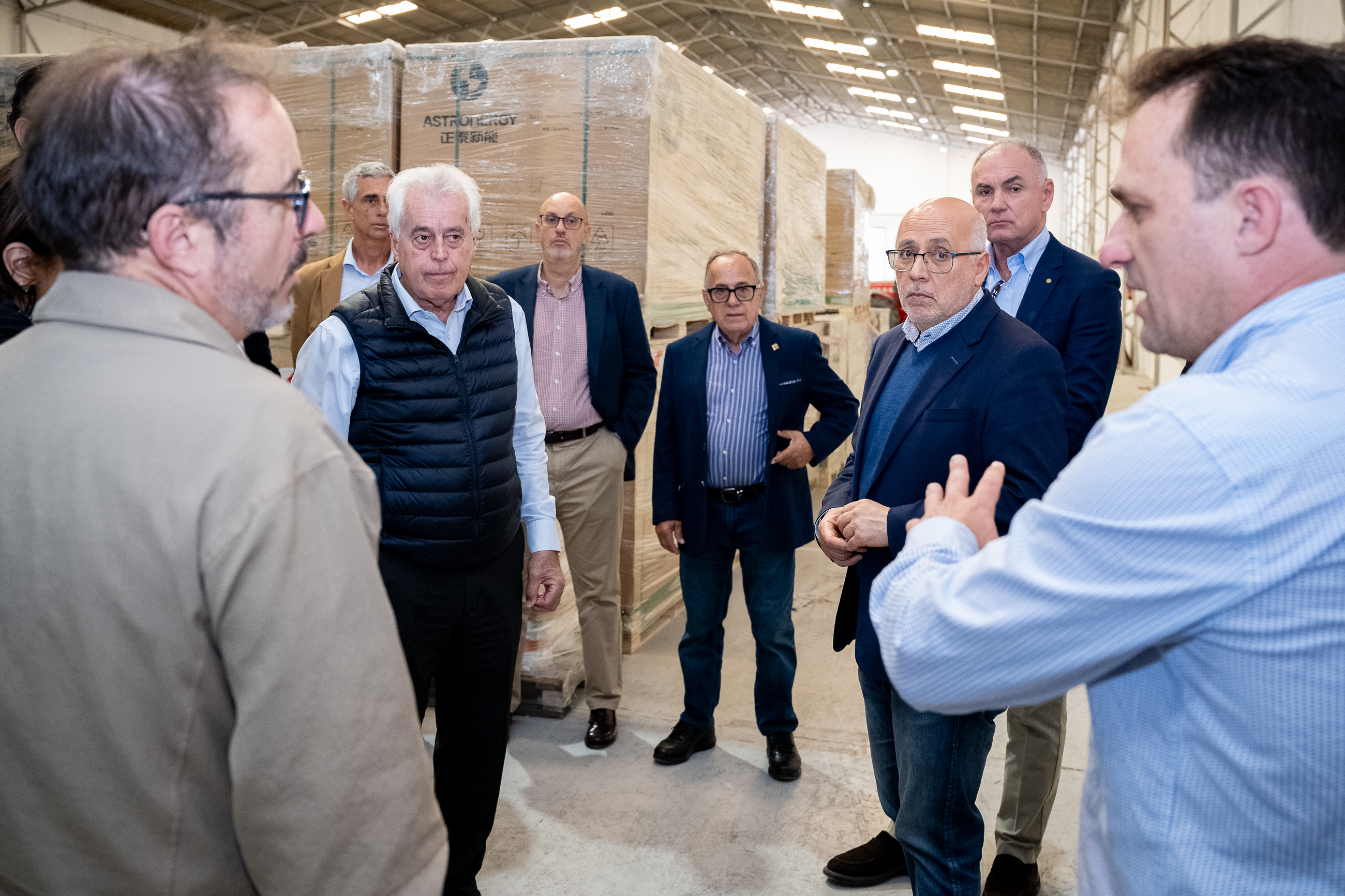Durante el recorrido, Morales estuvo acompañado por el consejero de Medio Ambiente, Clima, Energía y Conocimiento, Raúl García Brink; el alcalde de Telde, Juan Peña; el presidente de la Entidad de Conservación del Parque Empresarial de El Goro, Ángel Medina; y el presidente de la comunidad energética industrial de El Goro, Israel Bello, entre otros representantes del sector empresarial de la zona.